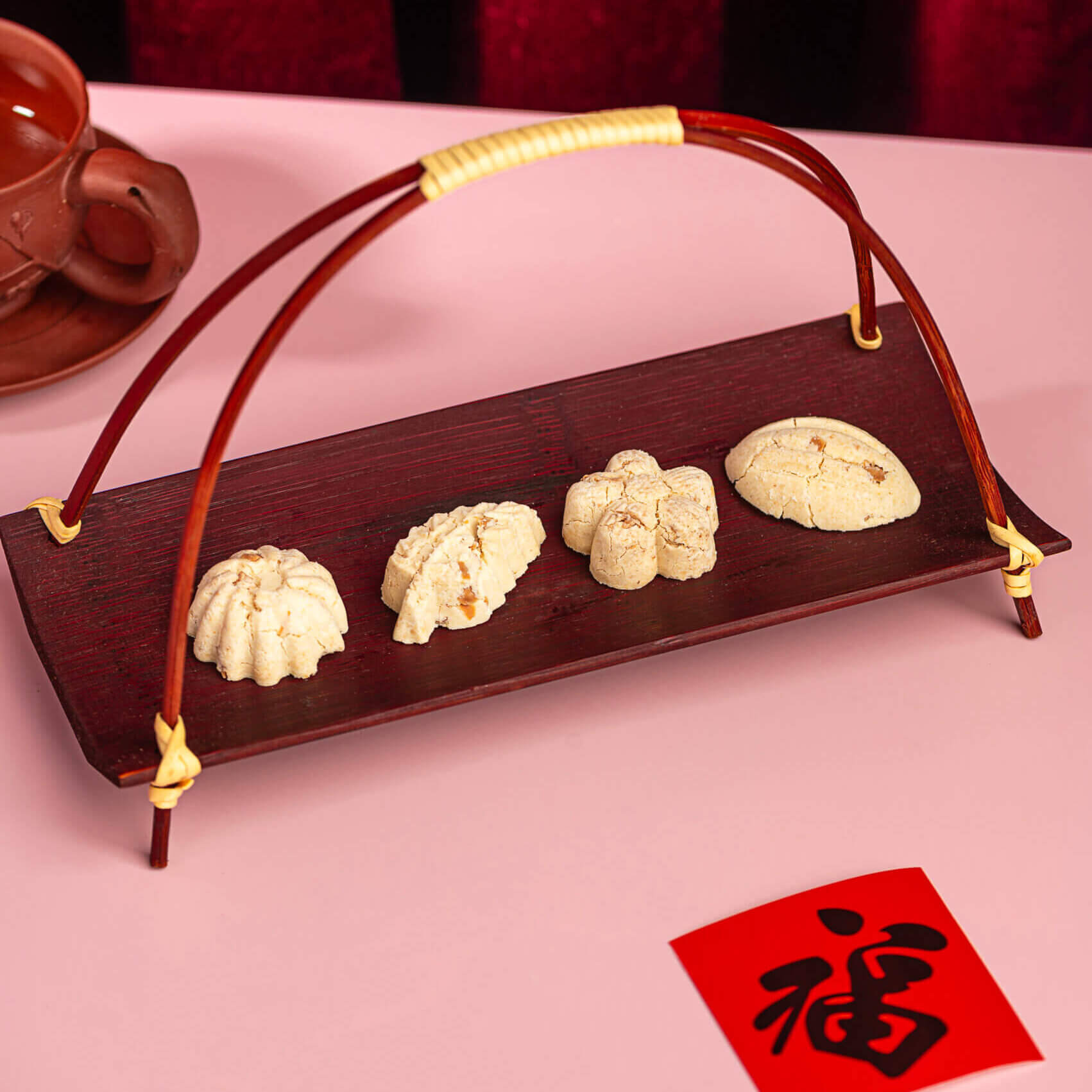 A new addition to our festive menu, the Cheesy Bangkit is a savoury twist on the traditional kueh bangkit. Light, airy, and melt in the mouth, each piece is dotted with cheesy bits that release a nutty, savoury flavour as you bite into them. The cheesiness blends beautifully with the buttery fragrance of the cookie, giving this nostalgic favourite a delightful modern upgrade.